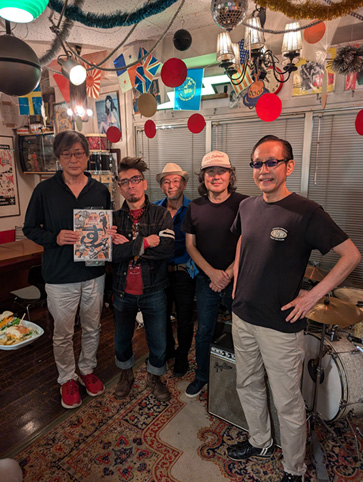 日本ロック・レジェンドの方々が出演する阿佐ヶ谷オイルシティで、30年ぶりにすしのライブが炸裂。当時、新宿の路上でカマシにカマシた「高田馬場ブルース」「大田区西六郷」「マジソンバッグ」など7曲のすしソングを披露。久しぶりのすしのステージに浮足立つコハ・ラ・スマートと朧月・夜だったが、二人の根拠のないハイテンション演奏に会場は大盛りあがり。お集まり頂いたお客様に楽しんでいただけたようだった。みなさま、ご来場いただき誠にありがとうございました!